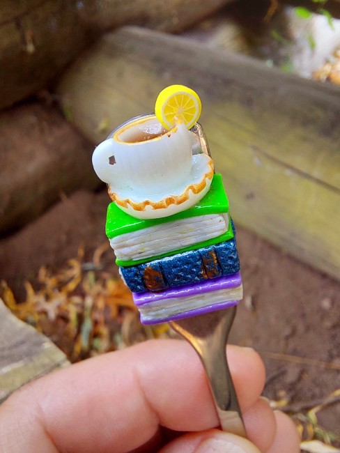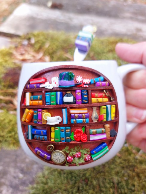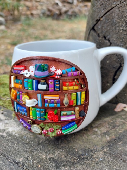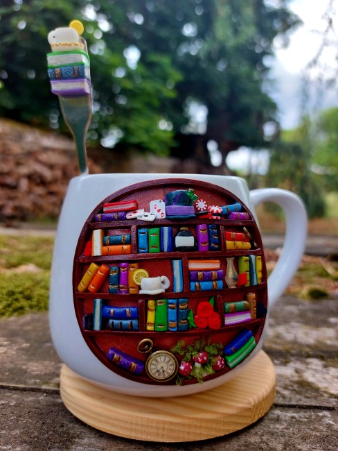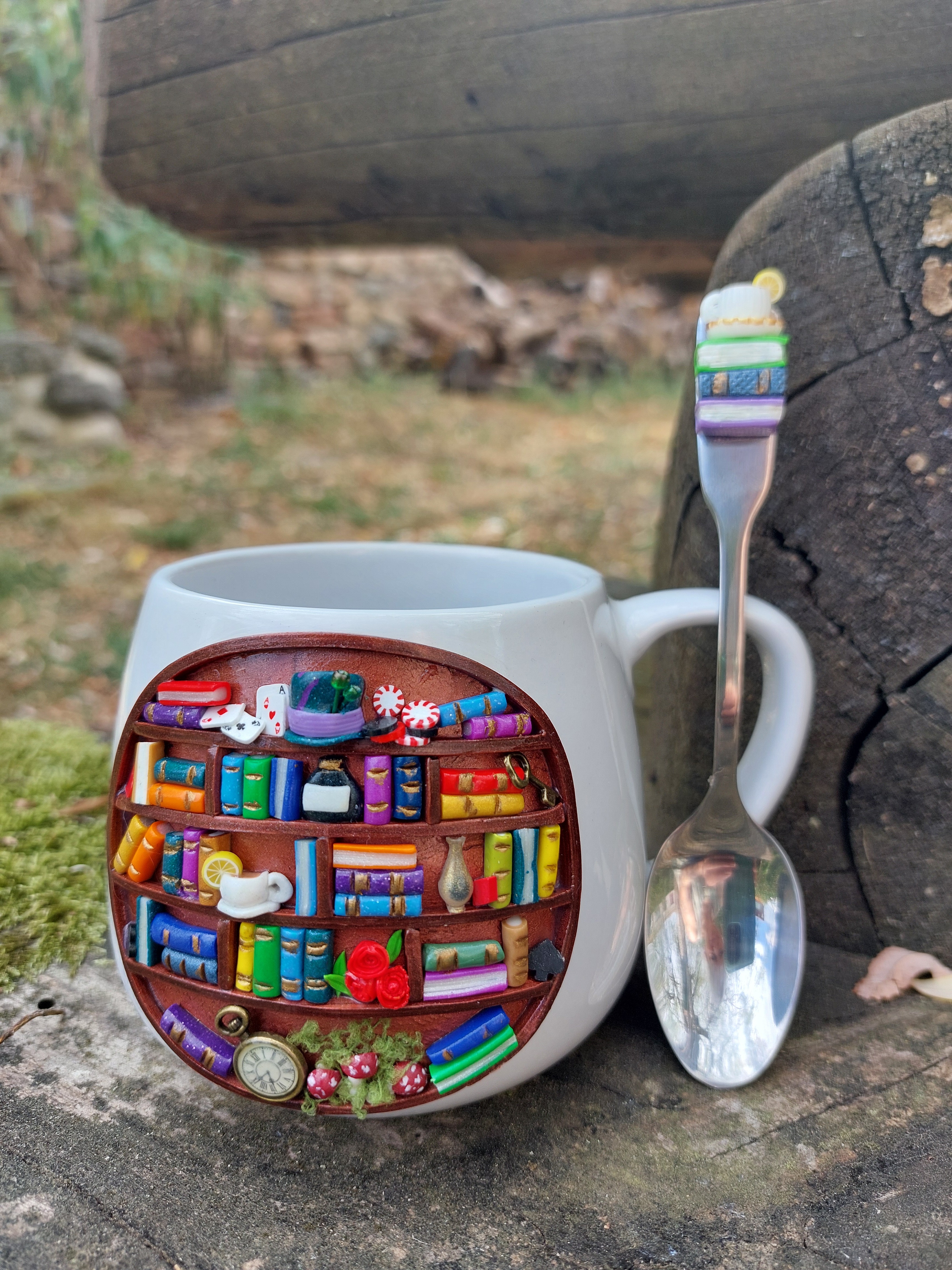 Mug en céramique et cuillère en acier inoxydable décorés en pâte polymère...