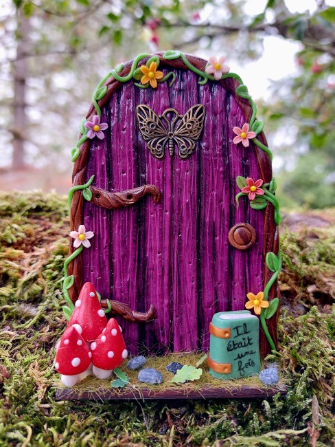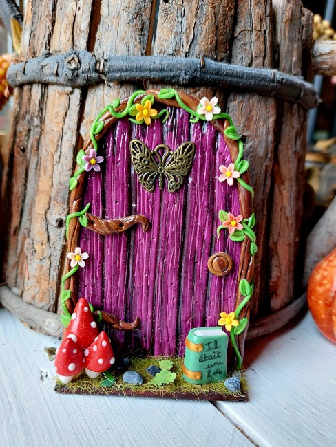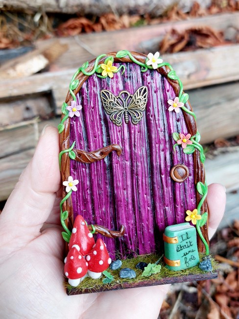 Porte sur un support en bois... pâte polymère vernie et un soupçon de poudre de fée...