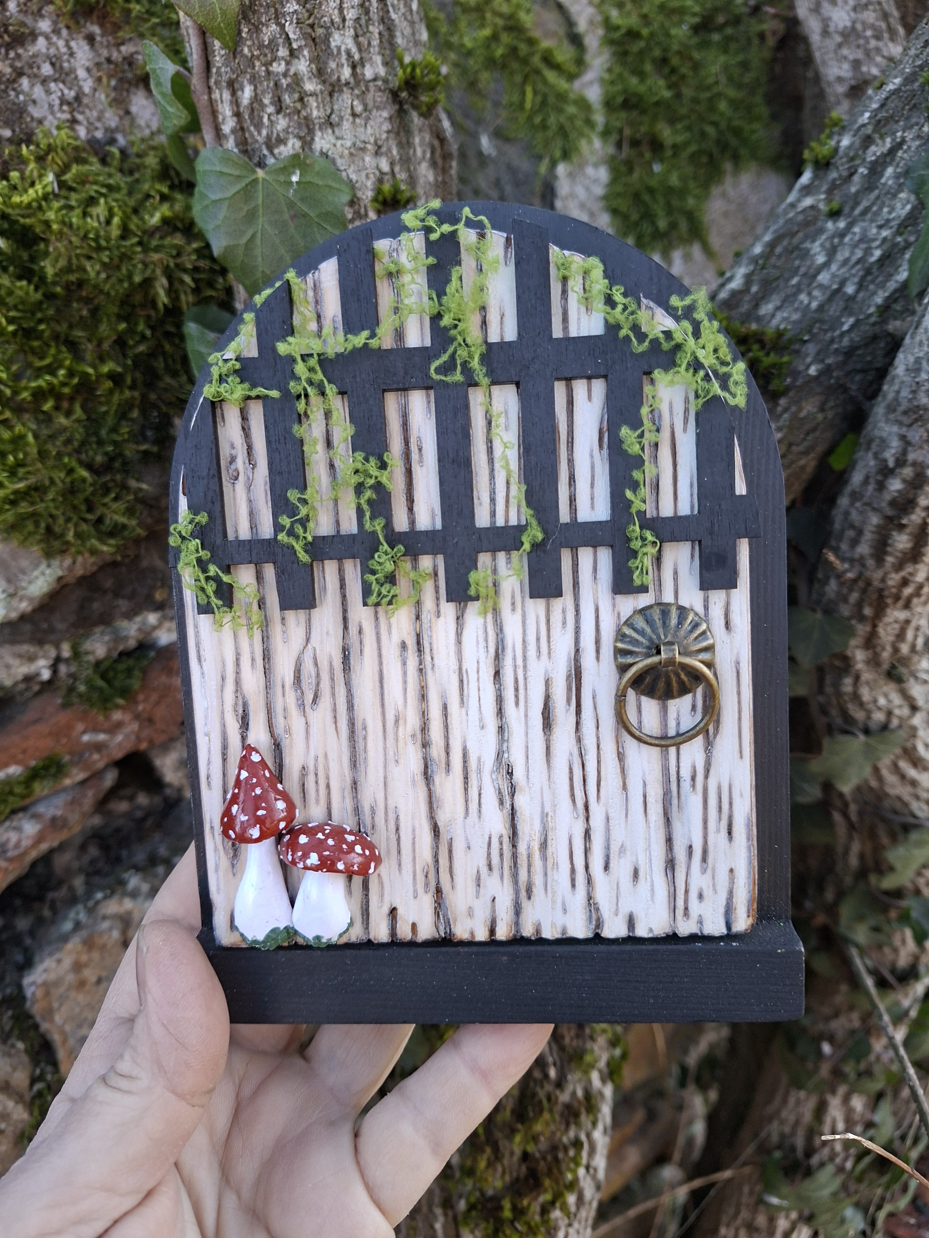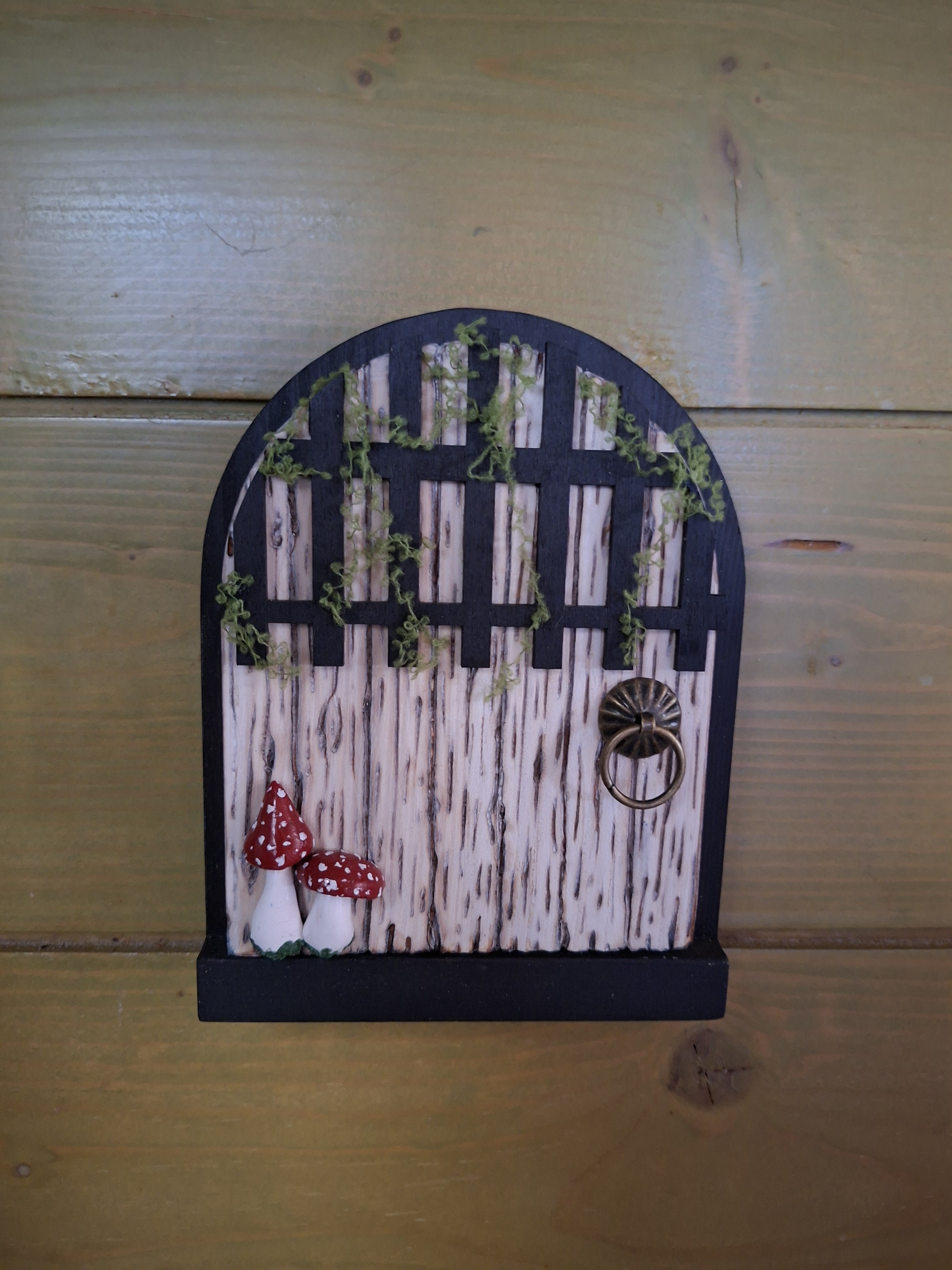 Porte en bois pyrogravée... décors en balsa et pâte polymére...