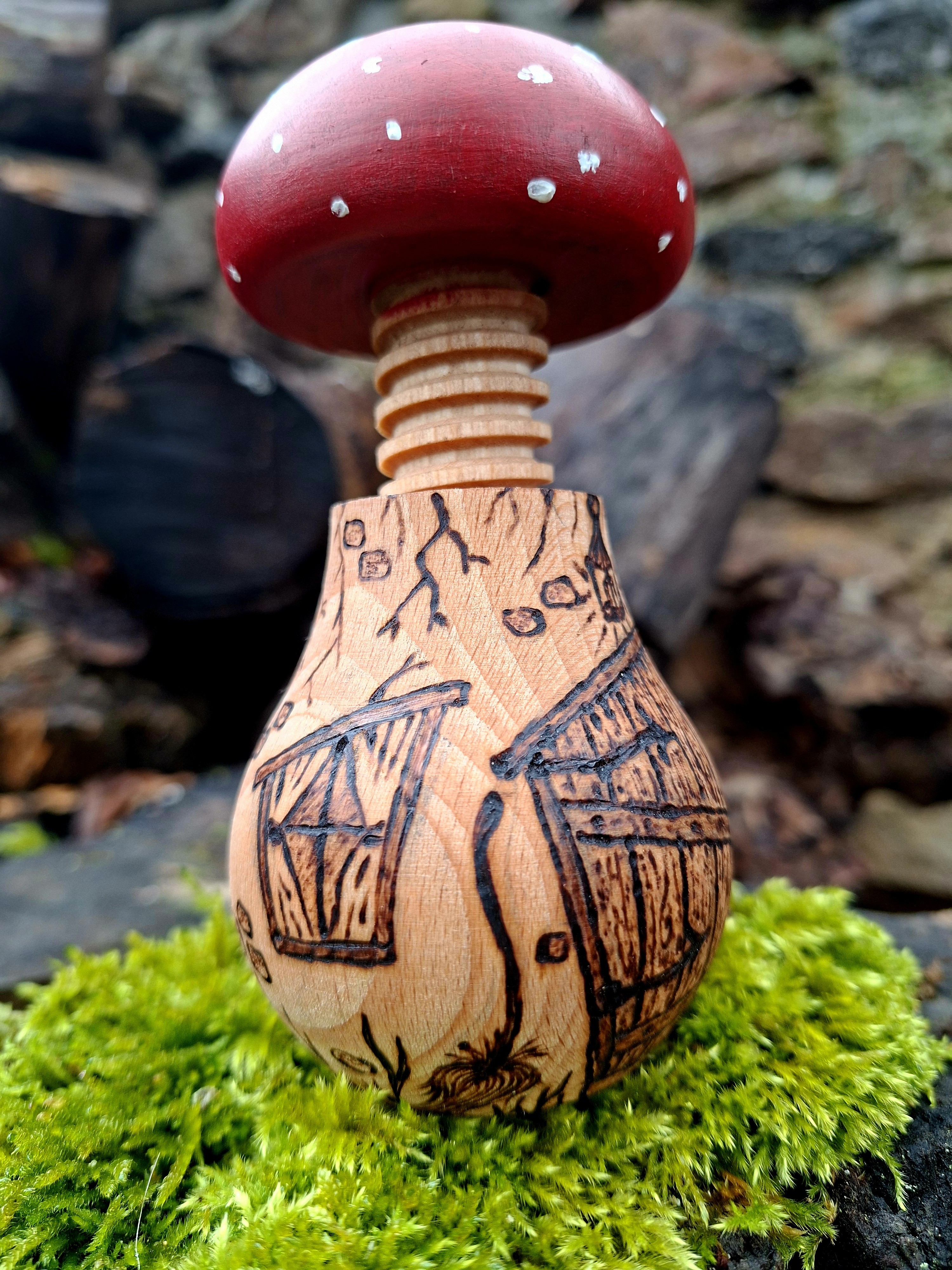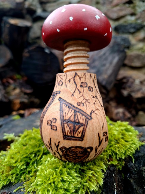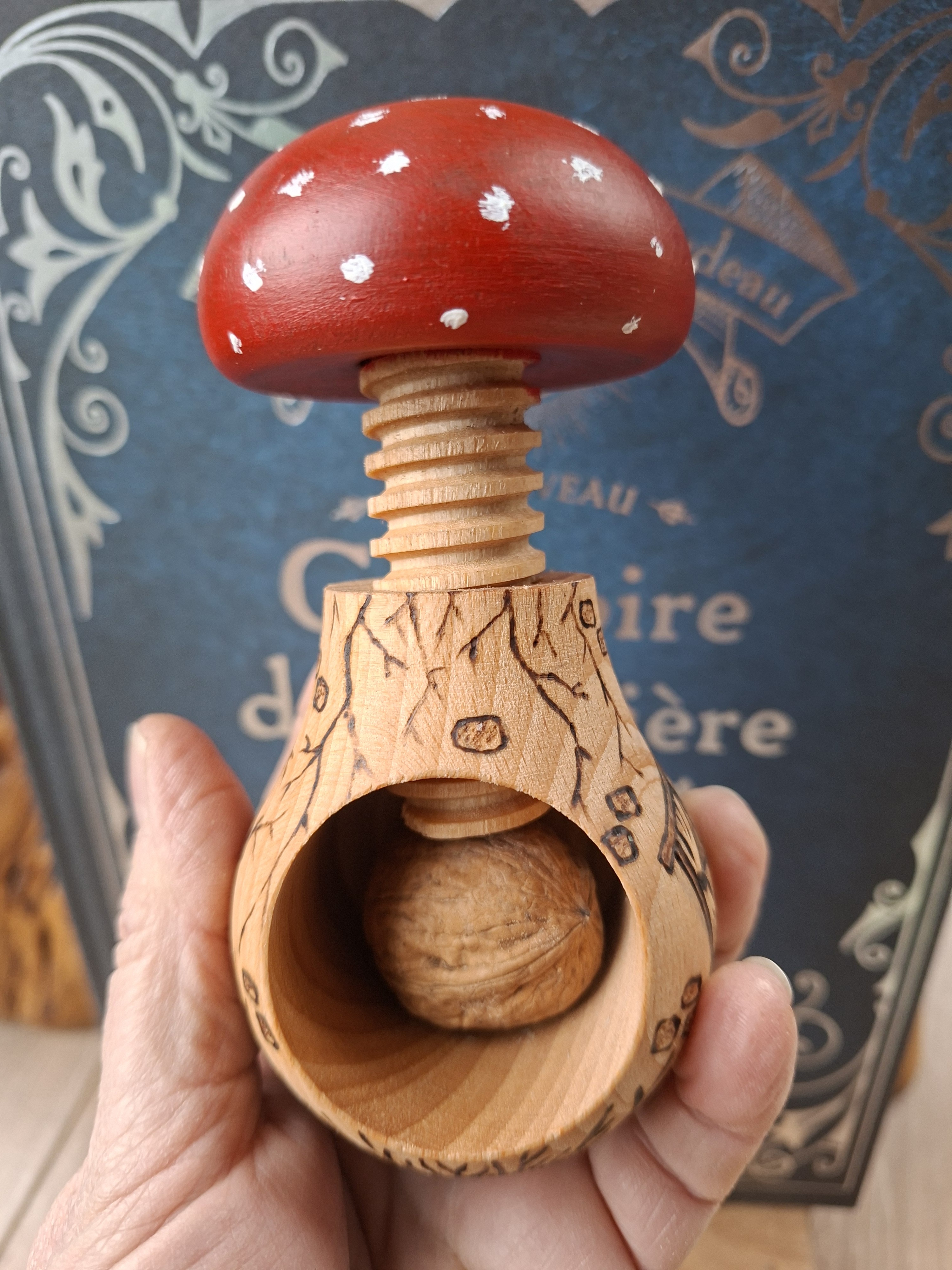 Casse-noix en bois pyrogravé à la main, et peint par mes soins...